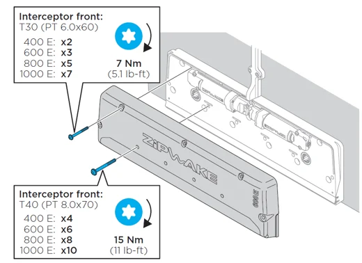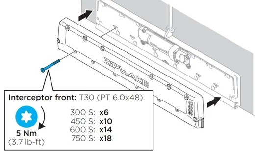 • With blade in retracted position, carefully place cover back over the back plate and secure with original Torx fasteners. IMPORTANT: Always use a torque wrench and tighten screws to spec:  Please refer to the Series S and Series E installation manuals for proper torque settings or refer to the illustrations below.  Exceeding these limits will impede blade movement and likely result in premature motor failure. Low torque “bicycle” torque wrenches are available through Amazon. For convenience, Imtra sells a small very easy to use torque wrench CLICK HERE.
