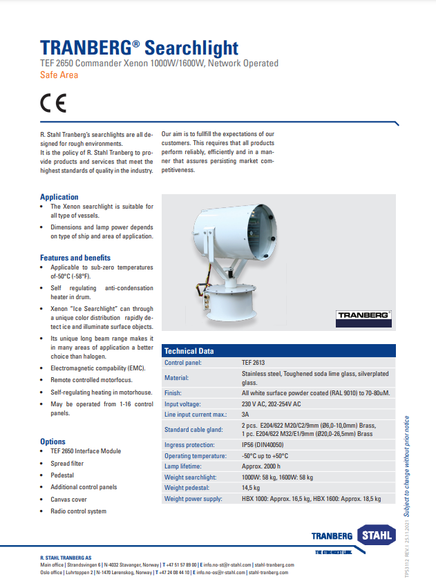 Tranberg holds certifications from DNV, IMO, and various explosion protection (Ex) standards.