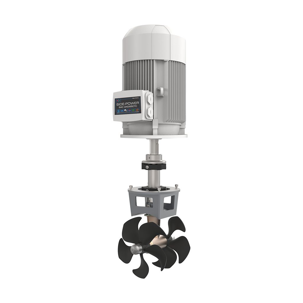 An AC electric boat thruster is a propulsion system that uses alternating current (AC) electricity to generate thrust. It typically consists of an electric motor driving a propeller. When activated, the motor turns the propeller, creating a flow of water that provides lateral or bow/stern thrust, allowing for precise maneuvering of the boat.